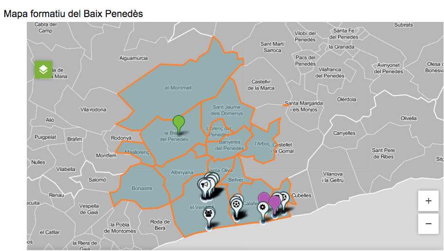 Ja es pot consultar la nova oferta formativa del Baix Penedès. Aquest passat mes de maig s’ha dut a terme l’actualització del Mapa Formatiu que recull tota l’oferta formativa de la comarca en un mapa de forma visual. En paraules de la Consellera comarcal d’ocupació, Maria Jesús Sequera que ha volgut destacar que: “S’ha aconseguit una coordinació amb tots els agents formadors de la comarca, i centralitzar aquesta informació al Mapa Formatiu. És una eina molt útil per a tothom que vulgui millorar la seva formació. Vull agrair la col·laboració de tots els centres formatius de la comarca que col·laboren en aquest projecte comarcal.”
