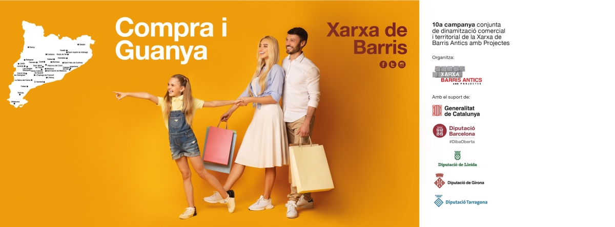 La campanya COMPRA I GUANYA és un projecte col·laboratiu entre administracions locals, ideat, organitzat i coordinat des dels municipis amb el suport de la Generalitat i de les quatre Diputacions.