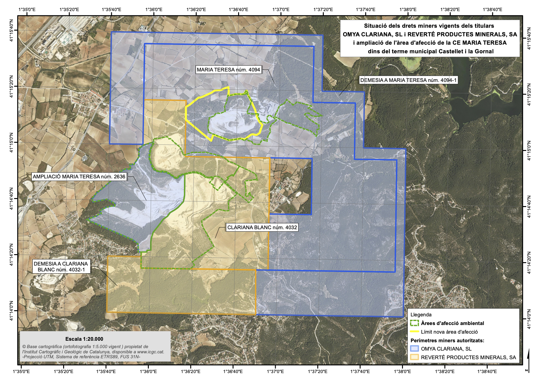 Gornal i de l’Arboç. Aquestes molèsties no es veuran sinó agreujades per l’ampliació de l’àrea d’afecció de la pedrera Maria Teresa núm. 4094, l’expansió de la qual està prevista en direcció cap al poble de La Gornal, i que, donat les exagerades proporcions de les quadrícules mineres concedides a les dues grans empreses extractives, es podrien incrementar de manera alarmant.