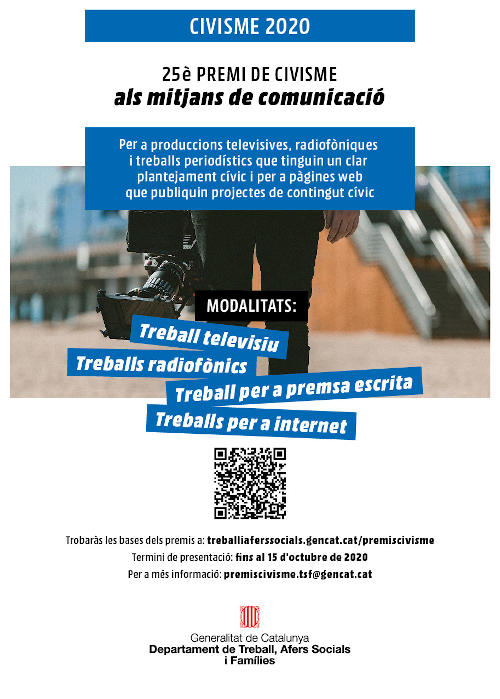 25è Premis de Civisme als mitjans de comunicació, que inclou les categories de televisió, ràdio, premsa i Internet per treballs que hagin destacat pel tractament del civisme i els valors i que hagin exercit un impacte social. (1.500 euros)