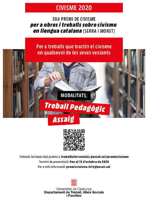 38è Premi de Civisme Serra i Moret, que premia obres i els treballs en llengua catalana que tractin del civisme, en qualsevol de les seves vessants, en les categories d’assaig i treball pedagògic. (1.500 euros)