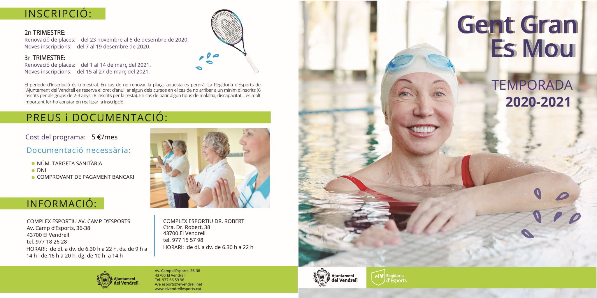 La Regidoria d’Esports presenta una àmplia oferta d’activitats del programa “Gent Gran Es Mou”: estiraments, tonificació, tennis, pilates, caminada curta, manteniment, exercicis pista, aqua, jocs tradicionals, circuit i cos i ment.