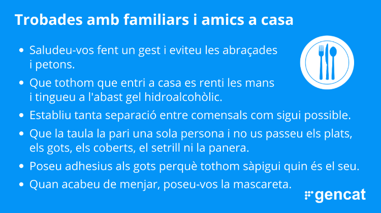 - Reduir els contactes socials diaris per evitar la multiplicació de possibles cadenes de transmissió.