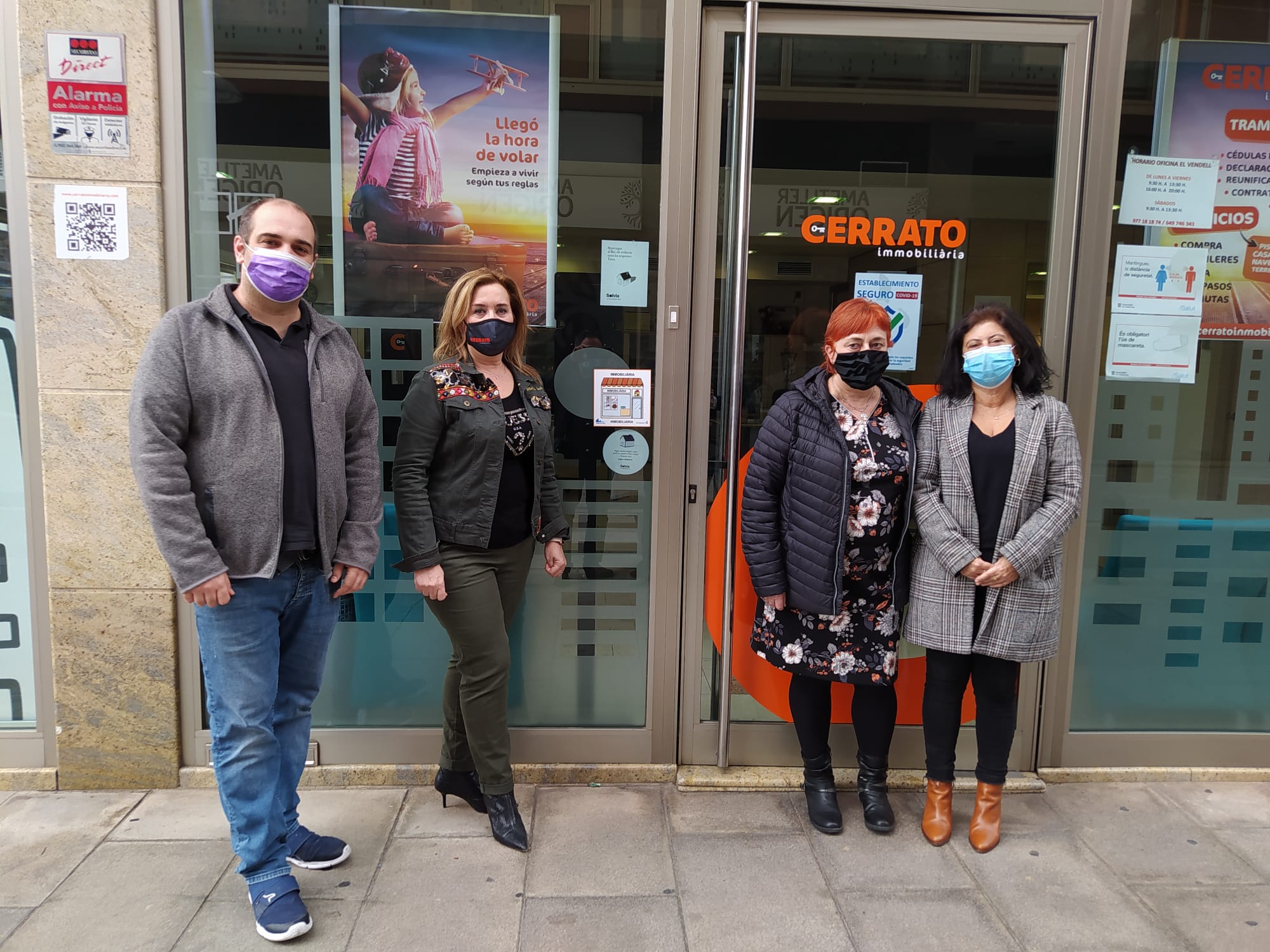D’esquerra a dreta, la gerent de Cerrato Immobiliària, Gracia Cerrato, el president de Todos En Azul, Juanjo Caravaca, la regidora de l’Ajuntament del Vendrell, Montserrat Martín, i la gerent d’Arc Serveis, Jerusalem Torra.