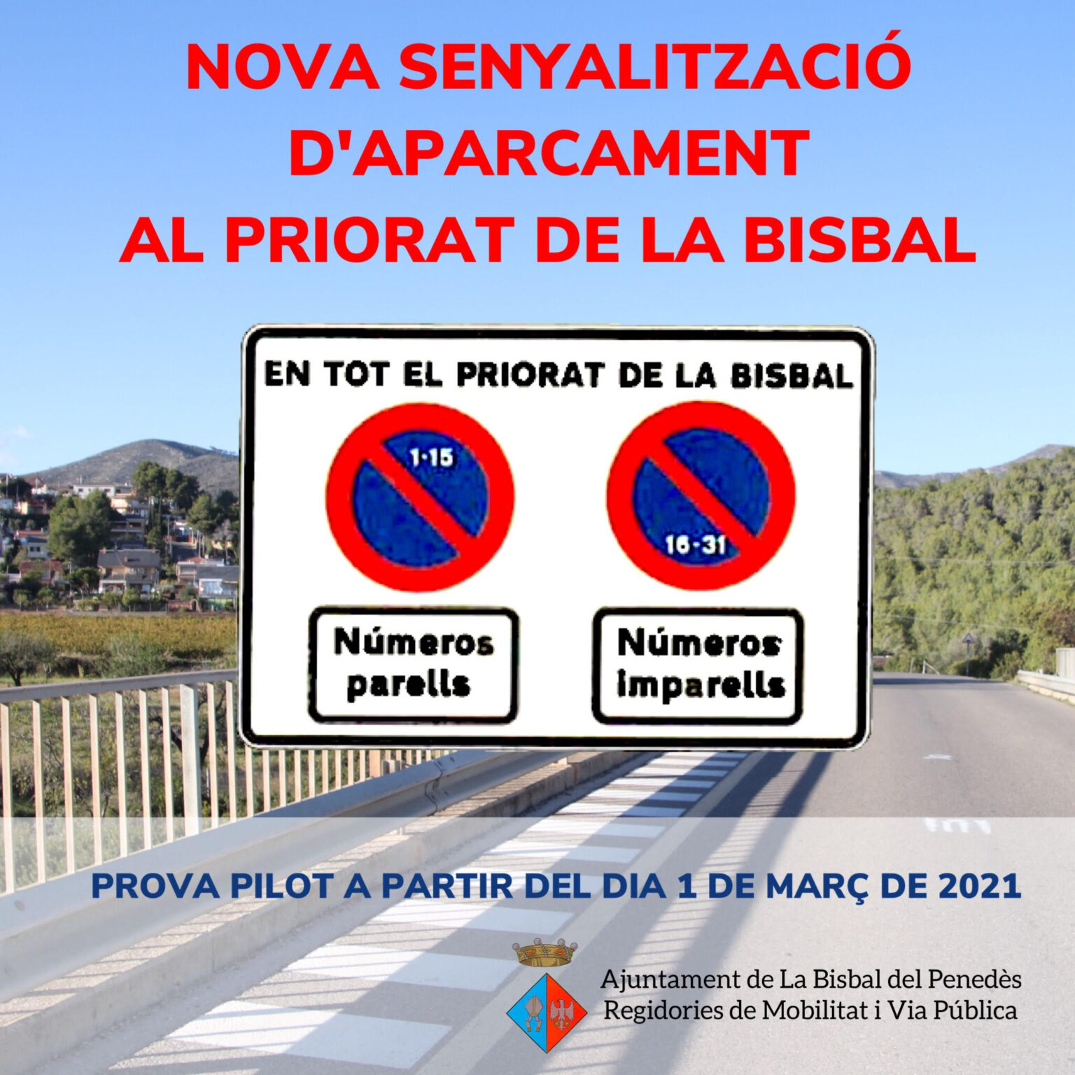 Les regidories de Mobilitat i Via Pública modificaran el sistema d’aparcament del Priorat de la Bisbal a partir del dia 1 de març amb l’objectiu de millorar l’ordenació i circulació de vehicles a la urbanització. Del dia 1 al dia 15 de cada mes estarà prohibit aparcar al davant dels números parells i del 16 al 31 no es podrà aparcar al davant dels números imparells. L’Ajuntament col•locarà senyalització informativa a les entrades del Priorat.La regidora de Mobilitat i Via Pública, Leo Uceda, ha explicat que es tracta d’una prova pilot que està previst que s’implanti en altres urbanitzacions del municipi, una vegada s’hagi vist com ha funcionat al Priorat.