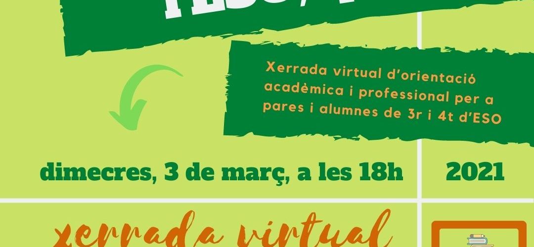 Serà el dimecres 3 de març a les 18h a través de l’enllaç de zoom: i estan adreçades a pares i mares i alumnes de 3er i 4rt d’ESO