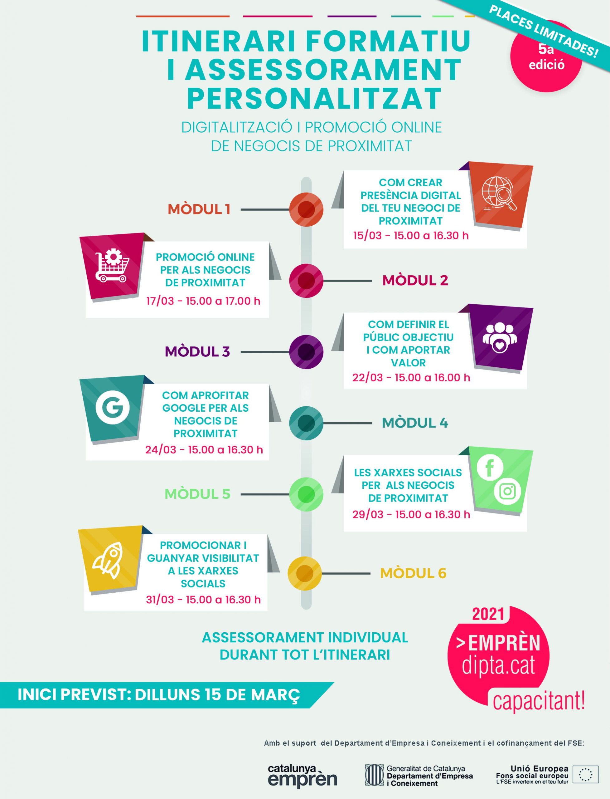 La data d’inici és el 15 de març, i consta de sis sessions grupals en format virtual. És un servei gratuït amb límit de participants, i cal realitzar una sol·licitud d’inscripció prèvia. Per a més informació consultar enllaç següent: