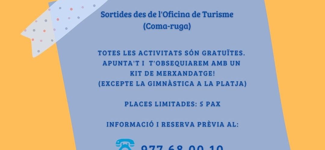 Les sortides s’iniciaran des de l’Oficina de Turisme (av. Brisamar, 1, Coma-ruga).