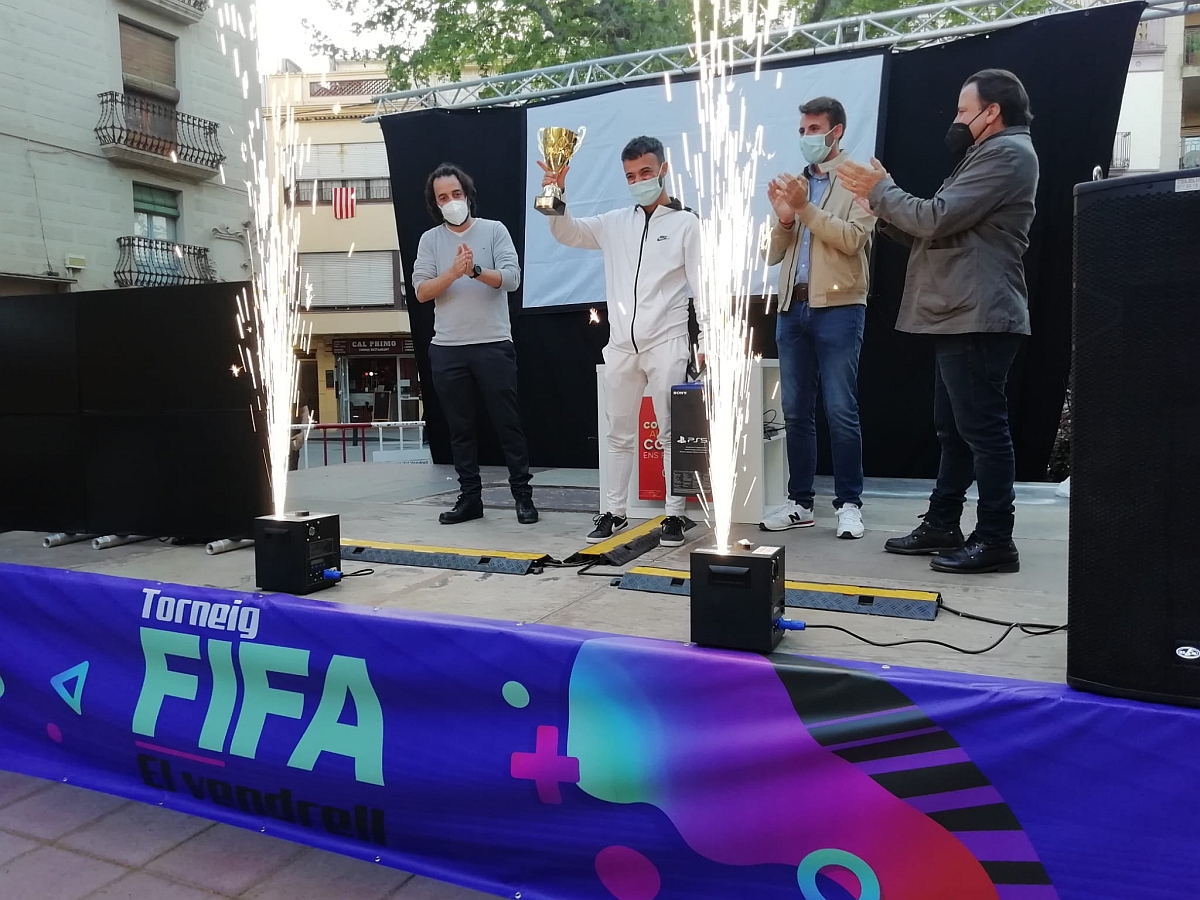 El passat dissabte 3 dabril, la plaça Nova va acollir el primer Torneig FIFA 21 El Vendrell, organitzat per lAjuntament del Vendrell, amb la col·laboració del Comerç del Vendrell (CIT).