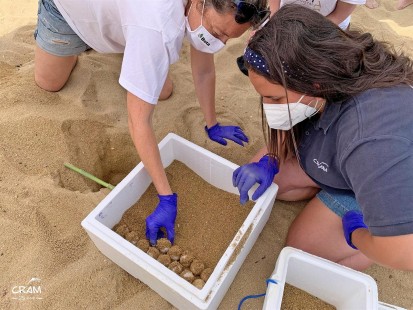 Els biòlegs del CRAM experts en tortugues es van desplaçar al lloc i van trobar un niu amb 81 ous, que van traslladar a un lloc més allunyat de la platja, en una zona dunar, per a garantir la seva correcta incubació.
