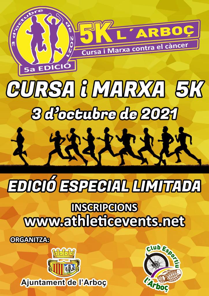 El diumenge 3 d’octubre de 2021 tindrà lloc la cinquena edició de la Cursa i Marxa Solidària contra el Càncer pel circuit urbà de la vila de l’Arboç. Una iniciativa promoguda per la regidoria d’Esports de l’Ajuntament de l’Arboç i organitzada conjuntament amb el Club Esportiu l’Arboç.