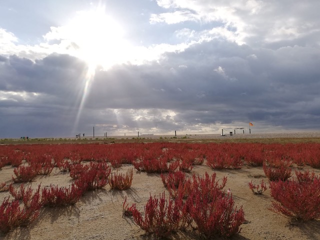 Ara, amb la tardor, tenim la sorpresa que les nostres platges es tenyeixen de vermell i és gràcies a la Salicornia Ramosissima (herba salada) i la Maritime Suaeda que són una evidència de la recuperació litoral. Fa uns dies comencem a veure créixer aquest extens mantell vermell davant de l’Alberg, al llevant de l’entrada al club Nàutic, prop de carrer Goya i en Caus.