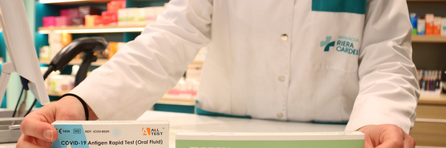 Pla mitjà d’un farmacèutic amb uns testos d’antígens aquest divendres 17 de desembre de 2021.