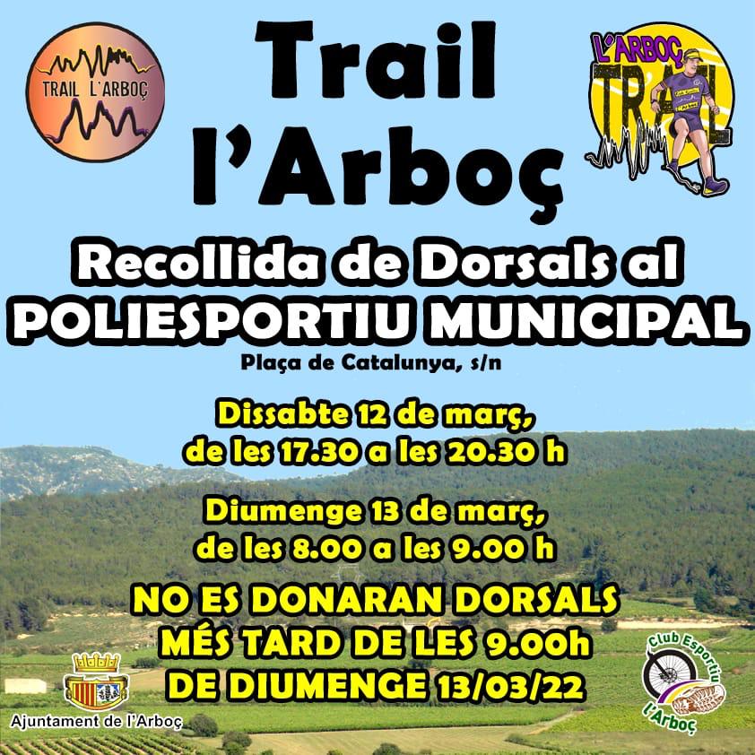 El proper diumenge 13 de març de 2022, tindrà lloc a la vila l’esperada Cursa Trail L’Arboç en una edició que comptarà amb més de 300 participants un 35% de les quals seran dones. Serà la primera prova puntuable per la Lliga Trail Tarragona 2022. Des de l’Ajuntament es recorda que els carrers afectats durant el transcurs la cursa seran: la Via Augusta, carrer de la Fassina, carrer de la Roca, i el Carrer del Pare Ferran on hi haurà l’arribada. Els carrers que creuen el circuit no estaran tallats, hi hauran voluntaris que donaran pas alternatiu als vehicles que podran circular amb restriccions.