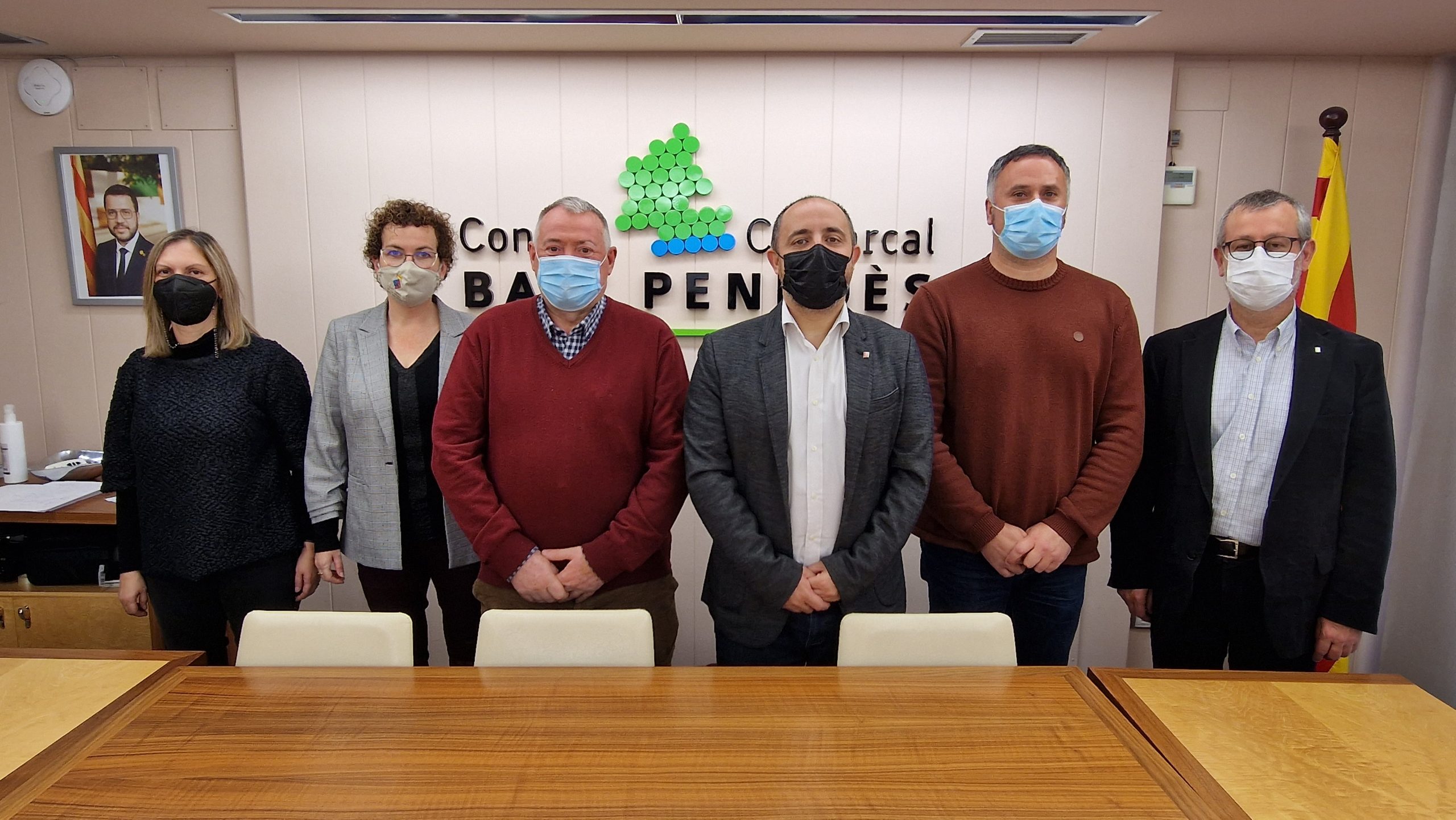 El president del Consell Comarcal, Joan Sans, conjuntament amb diversos alcaldes de la comarca, s’ha reunit aquest matí amb el Sr. Fabián Mohedano, president del Consell Català de Formació Professional i el el Sr. Àngel Cortadelles, Director dels Serveis Territorials al Camp de Tarragona/Penedès per parlar de la situació de la Formació Professional al Baix Penedès i les seves mancances. Joan Sans, ha expressat la preocupació existent en matèria formativa, ja que essent un dels punts estratègics per reduir el nombre de persones que estan a l’atur a la comarca, no s’acaba de donar resposta a les demandes de perfils professionals que fan les empreses.