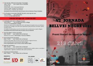La sisena edició de la Jornada Bellvei Negre, que organitza l’Ajuntament de Bellvei conjuntament amb l’editorial Serial Ediciones i Bellvei Ràdio, i amb el patrocini de Vins i Caves Jané Ventura, Xerigots de Vilafranca i l’Obrador del Vendrell, recupera el format presencial, després de dues edicions virtuals marcades per la pandèmia de Covid-19. Aquest any se celebrarà el cap de setmana del 2 i 3 d’abril a Bellvei, amb la majoria d’activitats ubicades al Centre cívic la Patronal i a la plaça Nova de Bellvei, però també s’estendrà a altres espais del municipi.