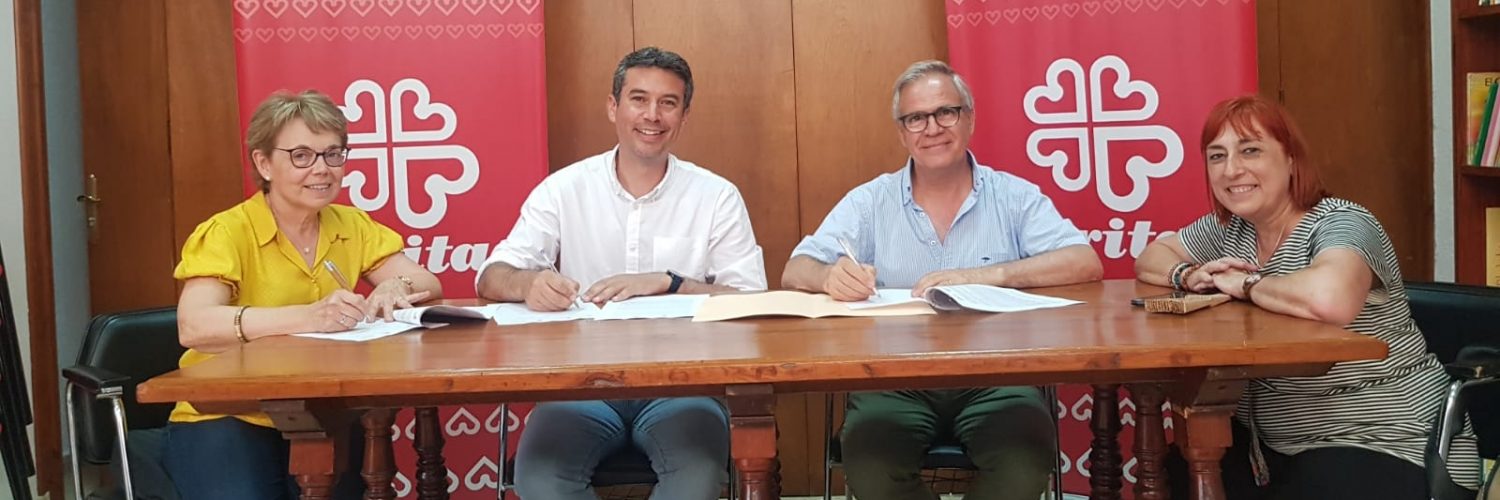 La signatura del conveni ha anat a càrrec de l’alcalde del Vendrell, Kenneth Martínez, i els representants de Càritas, Maria Carme Perelló i Salvador Grané.