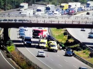 Les cues a l’AP-7 van clarament a la baixa després d’un nou dissabte al matí de trànsit complicat amb fins a 45 quilòmetres de circulació lenta i aturades en diversos trams. Han destacat els 18 quilòmetres entre Castellví de Rosanes i Sant Cugat del Vallès, en direcció Tarragona; i els 16 quilòmetres de retencions entre Cardedeu i Mollet del Vallès, en direcció Girona. En paral·lel, un accident sense ferits a Mont-roig del Camp ha deixat uns 5 quilòmetres de cua cap a Castelló de la Plana. A les 14.45 hores, es mantenen uns cinc quilòmetres de congestió a l’AP-7 a la Jonquera per accedir a França i 1 quilòmetre a Sant Cugat del Vallès per la retirada d’un vehicle accidentat. A l’N-II també es registren 5,5 quilòmetres de cua a la Jonquera.