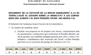 En paral·lel, la majoria de grups han aprovat revisar i adaptar els horaris i freqüències de la línia de tren R2Sud per reduir-ne els retards i garantir més serveis semidirectes. En aquest sentit, també demana que el Departament de Territori analitzi el règim tarifari de la vegueria Penedès per revisar els canvis de zona actuals.