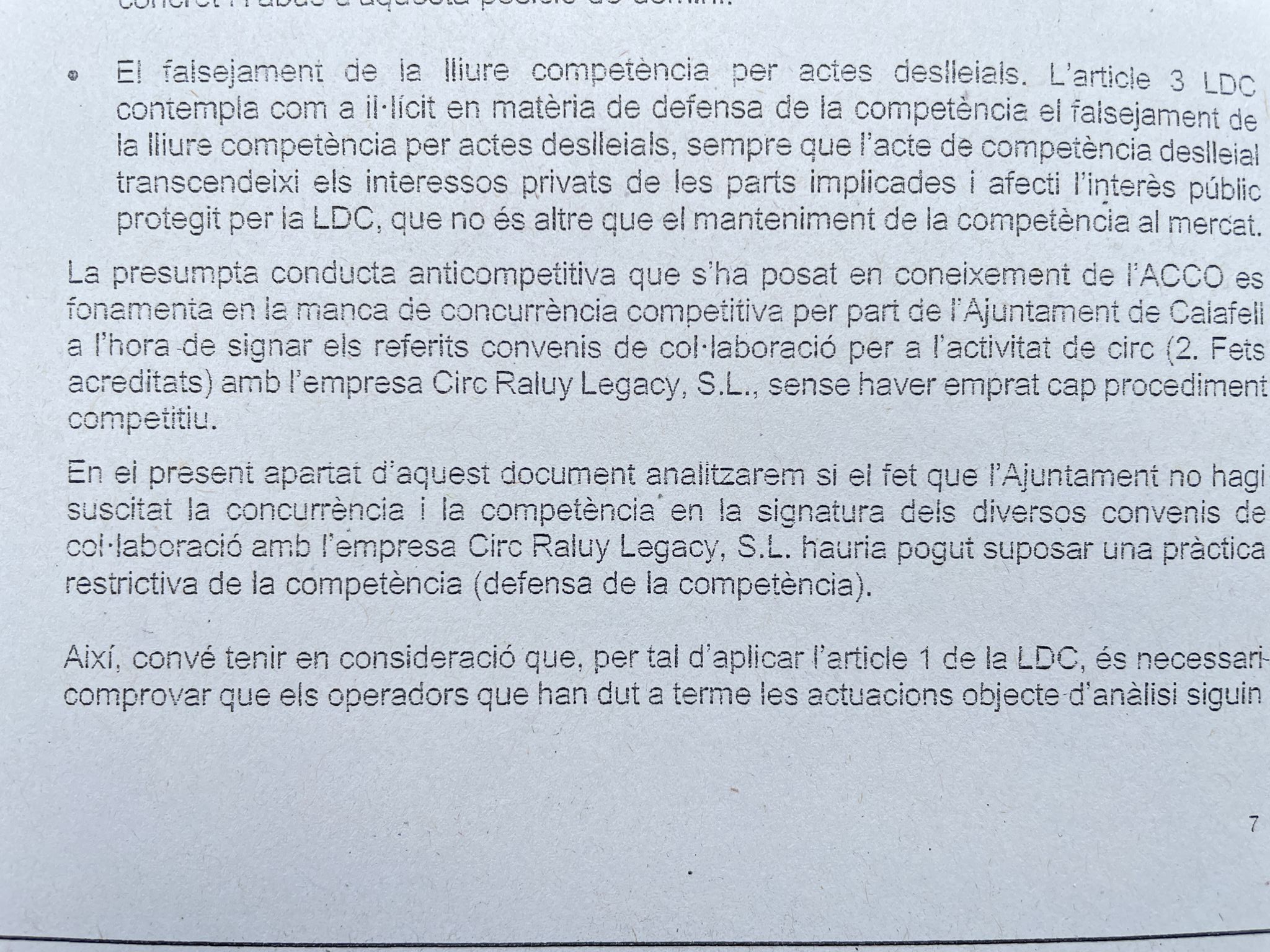 Al seu torn, l’alcalde de Calafell, Ramon Ferré, sosté que la relació amb Circ Raluy Legacy s’ajusta a la normativa vigent i ressalta que l’informe de l’ACCO així ho subscriu, “ja que només fa recomanacions per substituir les adjudicacions directes per processos publicitats”.
